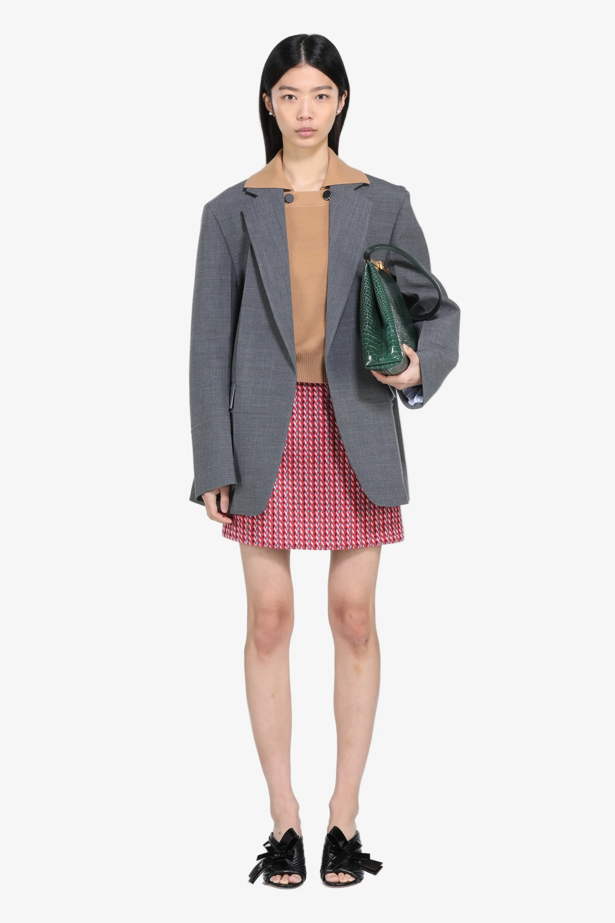 Buttonless jacket in gray fabric. It features a modern, loose fit with structured shoulders. The jacket features two front pockets and a no-button construction, giving it an elegant yet casual look. Ideal for casual or formal occasions, this jacket pairs easily with a variety of outfits. DETAILS Color: Grey Composition: 53%PL 43%WO 4%EA Product Code: 25IN2S0L04130478737 Made in Italy SIZE AND VESTIBILITY The model wears size 40. The item fits oversized.