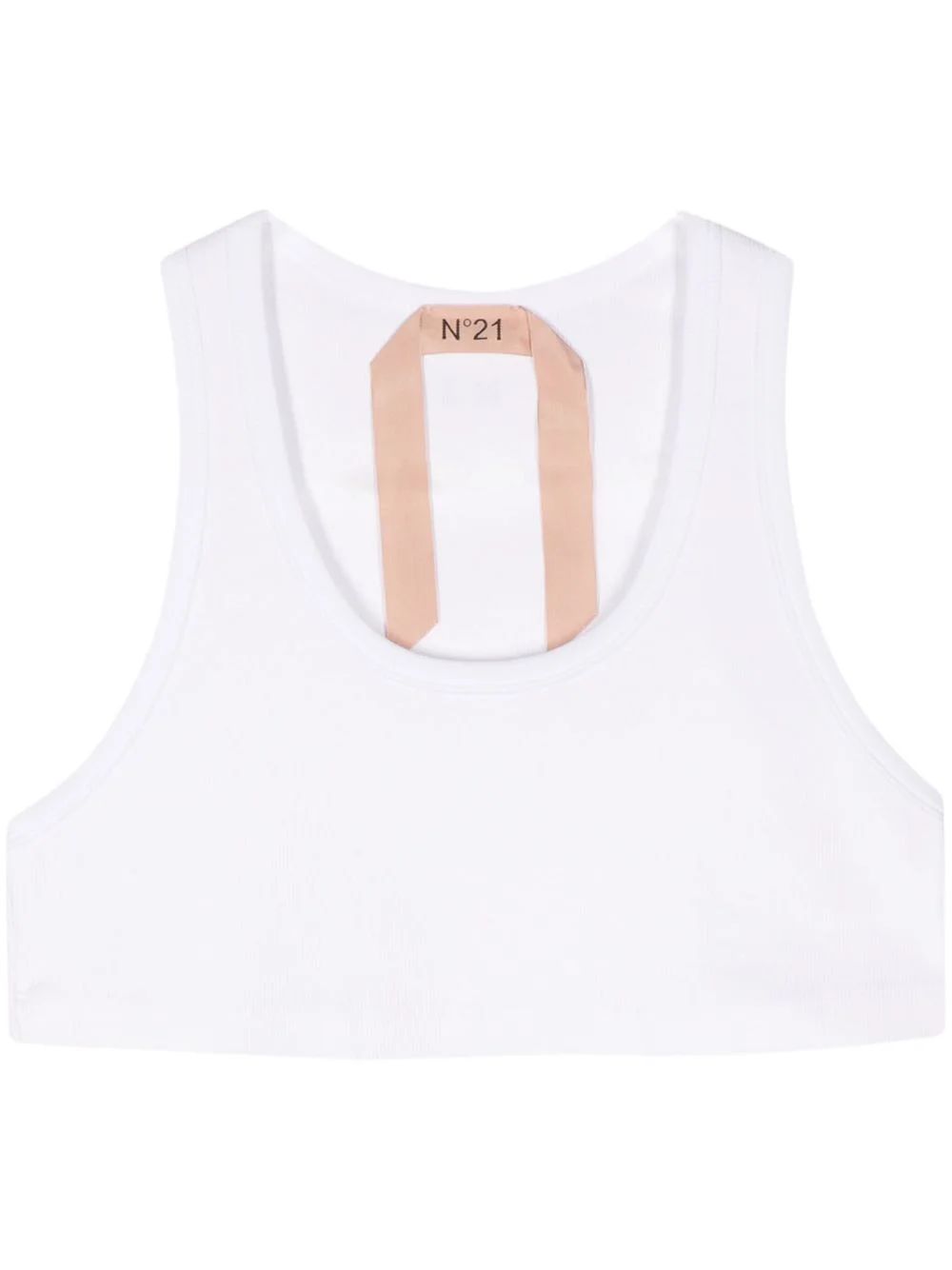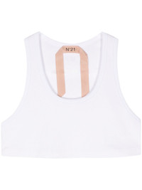 jersey crop top Highlights - White - Cotton blend - Jersey texture - Ribbed knit - Logo print to the rear - Scoop neck - Sleeveless - Cropped - Straight hem - Unlined Made in Italy Composition Cotton 98%, Elastane 2% Washing instructions Hand Wash