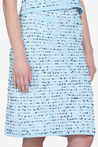 Knee-length skirt in light blue boucle knit. The fabric is knitted with dark yarns that create a tweed-like pattern. The fit is straight and the waist is finished with a ribbed band. The length reaches the knee and the finishes are clean. DETAILS Color: Light Blue Composition: 75%CO 23%PA 2%PC Product Code: 26EN2M0AC0276016255 Made in Italy SIZE AND VESTIBILITY La modella indossa la taglia 40 ed e alta 177 cm. Il capo veste regular.