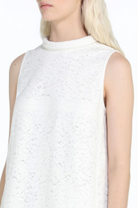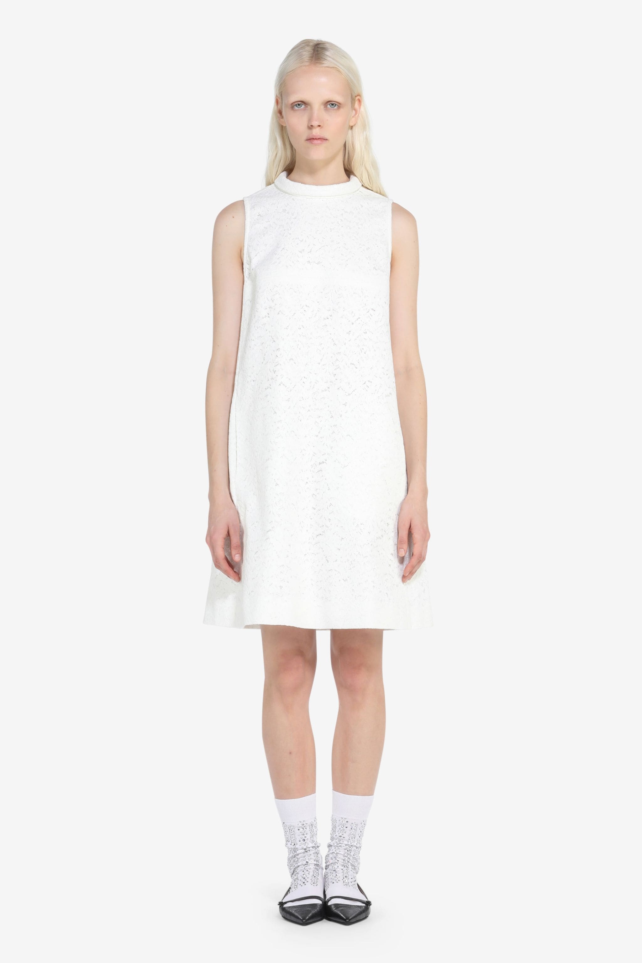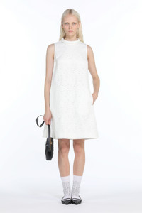 WHITE CORDED-LACE MINI DRESS WITH A-LINE SILHOUETTE. ROLLED NECK. SLEEVELESS. VISIBLE TOPSTITCHING. KNEE-LENGTH STRAIGHT HEM. BUTTON BACK FASTENING. MORE DETAILS SHOW COLLECTION WHITE RELAXED FIT 74% COTTON, 26% NYLON DRY CLEAN ONLY MADE IN ITALY STYLE ID: 24EN2S0H06241261105 SIZE AND FIT MODEL IS 173CM AND WEARS IT SIZE 40