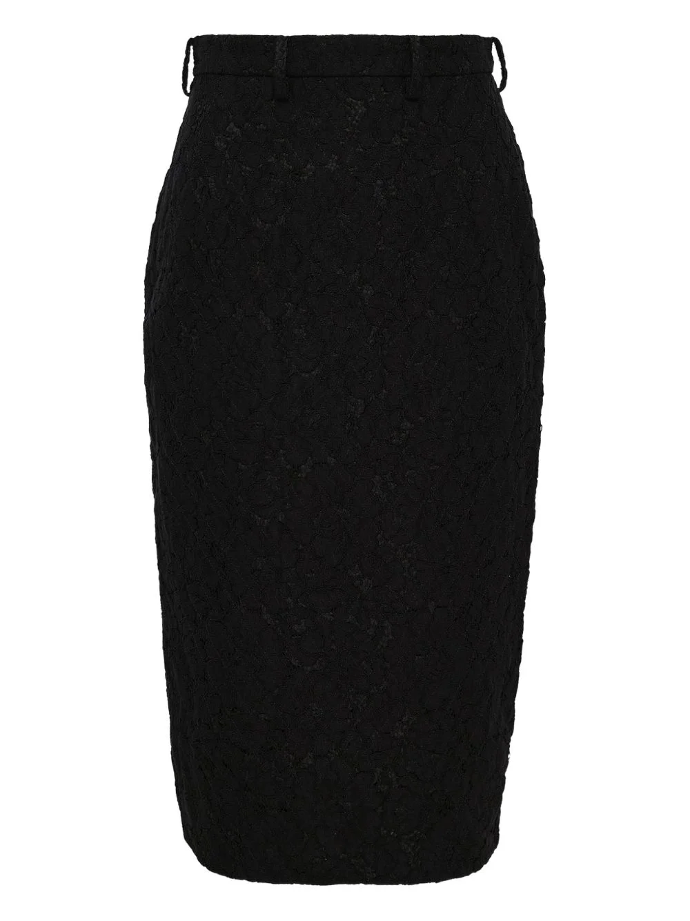 lace pencil midi skirt Highlights - Black - Lace fabric - Pencil shape - High waist - Concealed zip fastening - Straight hem Imported Composition Fabric 100% Washing instructions Read Manufacturer Guidelines