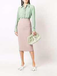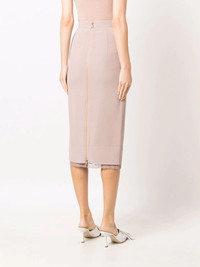 lace trim pencil skirt A fine example of Nº21 timelessly feminine aesthetic, this AW21 pencil skirt boasts a charming dusty pink hue and a dainty lace trim at the hem. Imported Composition Outer: Viscose 50%, Acetate 50% Lining: Cupro 100% SIZE & FIT Model measurements Height 5 ft 10 in(1.78 m) Bust/Chest 31.49 in(80 cm) Hips 36.22 in(92 cm) Waist 25.59 in(65 cm) FittingInformation This piece fits true to size. We recommend you get your regular size Cut for a slim fit Made with a mid-weight non-stretch fabric Washing instructions Dry Clean Only