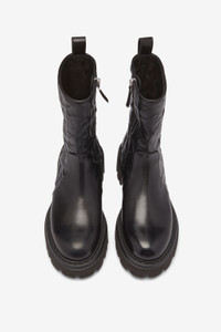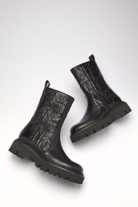 BLACK LEATHER COMBAT BOOTS WITH ALL-OVER N21 LOGO EMBOSSING AND CONTRAST SMOOTH LEATHER PANELLING. HEEL LOOP. ROUND TOE. CHUNKY RUBBER TREAD SOLE. ZIP SIDE FASTENING. MORE DETAILS 100% CALF LEATHER MADE IN ITALY STYLE ID: 22ISP03700370N001 SIZE AND FIT HEEL HEIGHT: 40MM IT SIZING. FITS TRUE TO SIZE