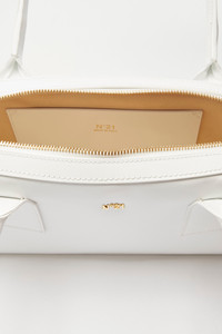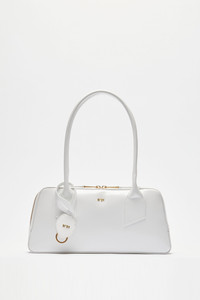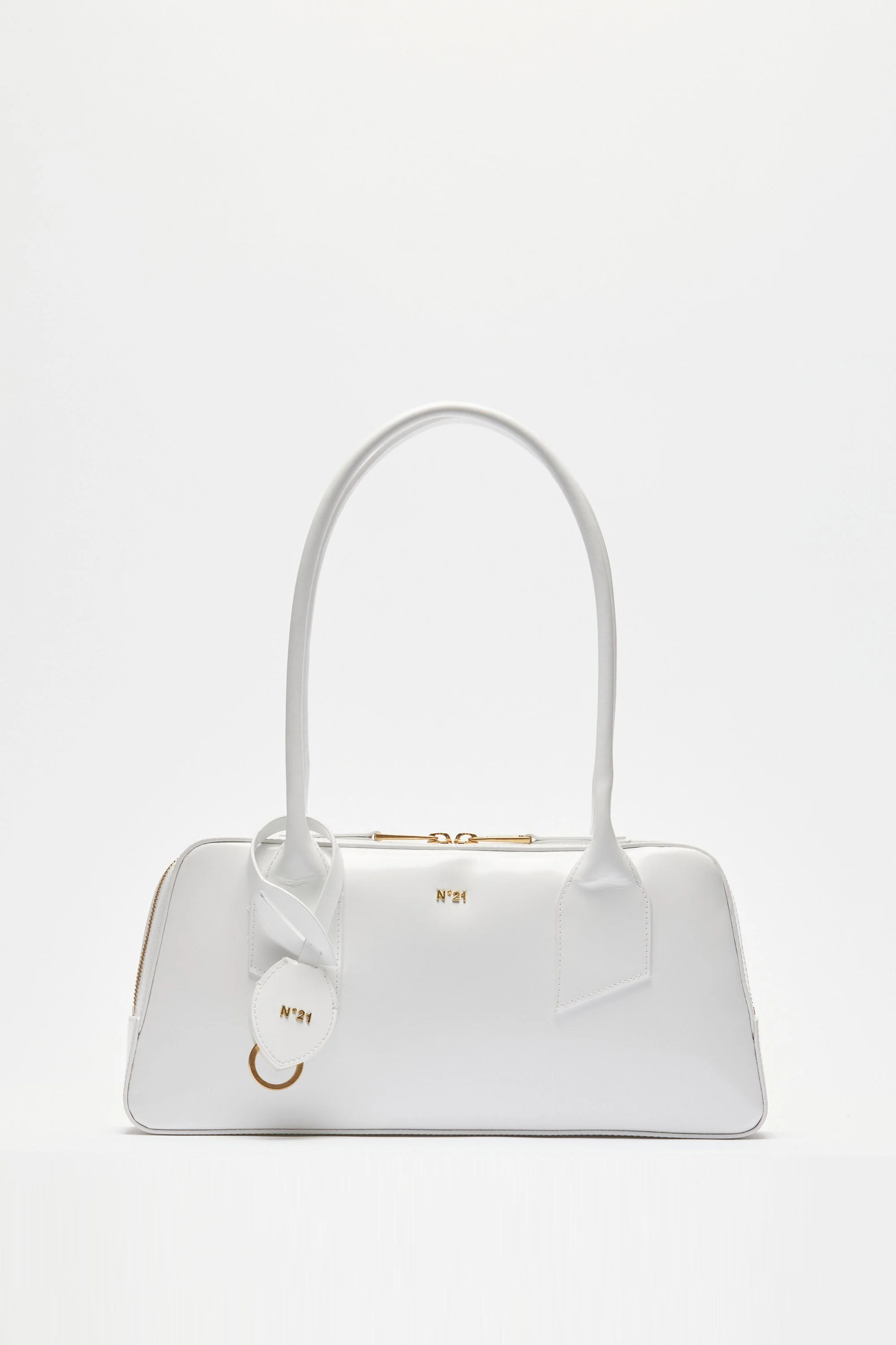 The Malibu leather bag is a handbag made of smooth white leather. It features a rectangular shape with slightly rounded corners and long handles for shoulder carry. It closes with a gold-tone metal zipper, while small metallic details enhance the design. The rigid structure ensures a defined and durable shape. Keychain not included. DETAILS Color: White External composition: 100% CALF LEATHER Product Code: 25IBP0975SZ01W001 Made in Italy SIZE AND VESTIBILITY Dimensions: 34-28x16x7