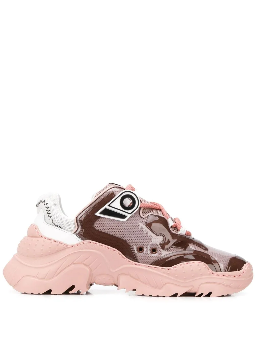 mesh panel low-top sneakers These low-top sneakers from Nº21 have got it all going on. Mesh panels and a high-shine detail keep them contemporary, without taking away from the effortless feel. Best foot forward...to the checkout! Featuring mesh panels, a logo patch at the tongue, a round toe, a front lace up detail and a ridged rubber sole. Made in Italy Composition Outer: Nylon 45%, PVC 45%, Calf Leather 10% Lining: Nylon 100% Sole: Rubber 100%