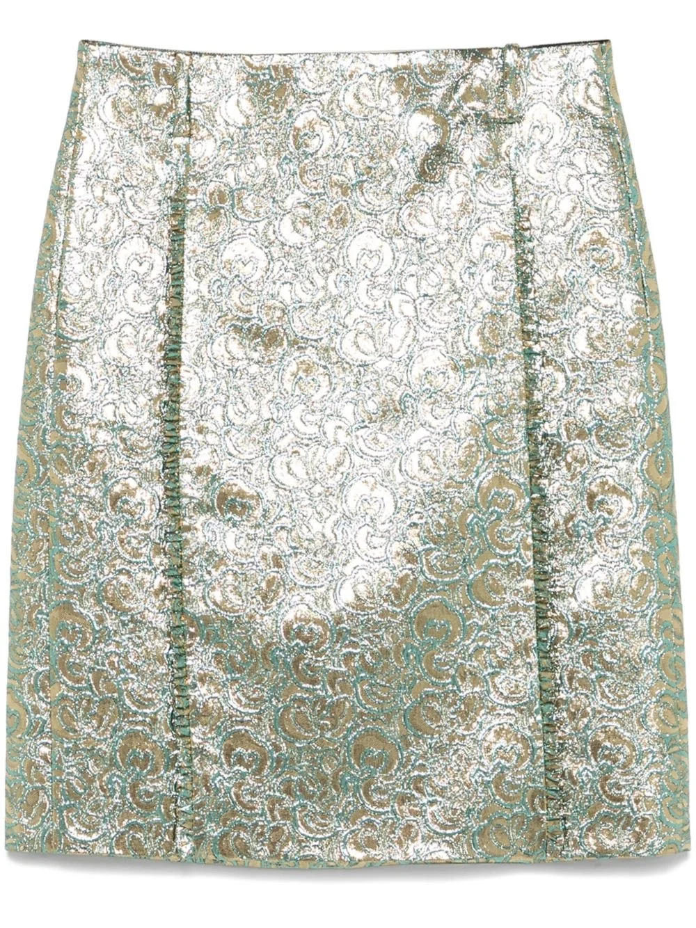 metallic-flower-print midi skirt Highlights - Gold-tone - Concealed rear hook and zip fastening - Belt loops - Two side inset pockets - Full lining Made in Italy Composition Outer: Polyester 68%, Cotton 31%, Polyamide 1% Lining: Viscose 100% SIZE & FIT Model measurements Height 5 ft 9 in(1.76 m) Bust/Chest 31.1 in(79 cm) Hips 36.61 in(93 cm) Waist 24.8 in(63 cm) FittingInformation This mini-length skirt is intended to be worn high on the waist Made from a midweight non-stretch fabric