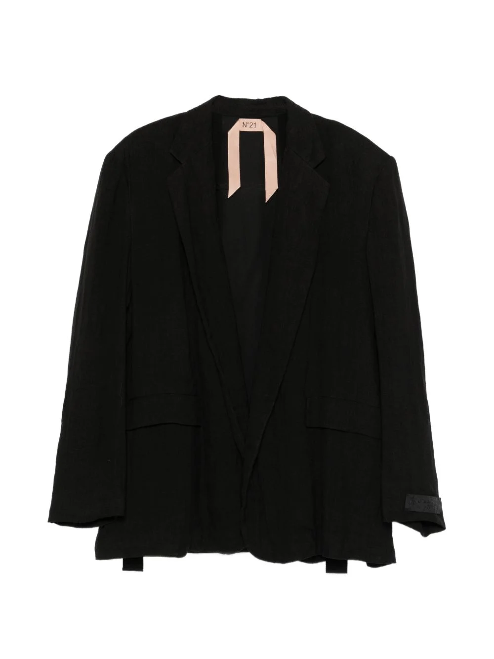 notched lapel blazer Highlights - Black - Notched lapels - Front flap pocket - Long sleeves - Rear vent - Straight hem Made in Italy Composition Outer: Linen/Flax 90%, Polyamide 10% Lining: Cotton 100% Washing instructions Dry Clean Only