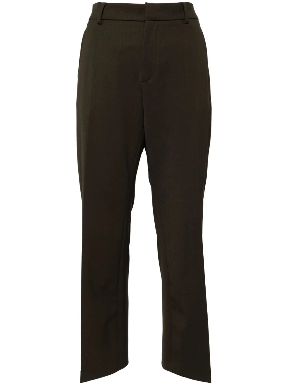 olive-green straight-leg trousers