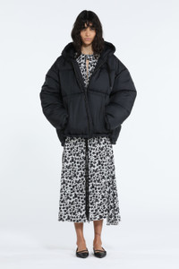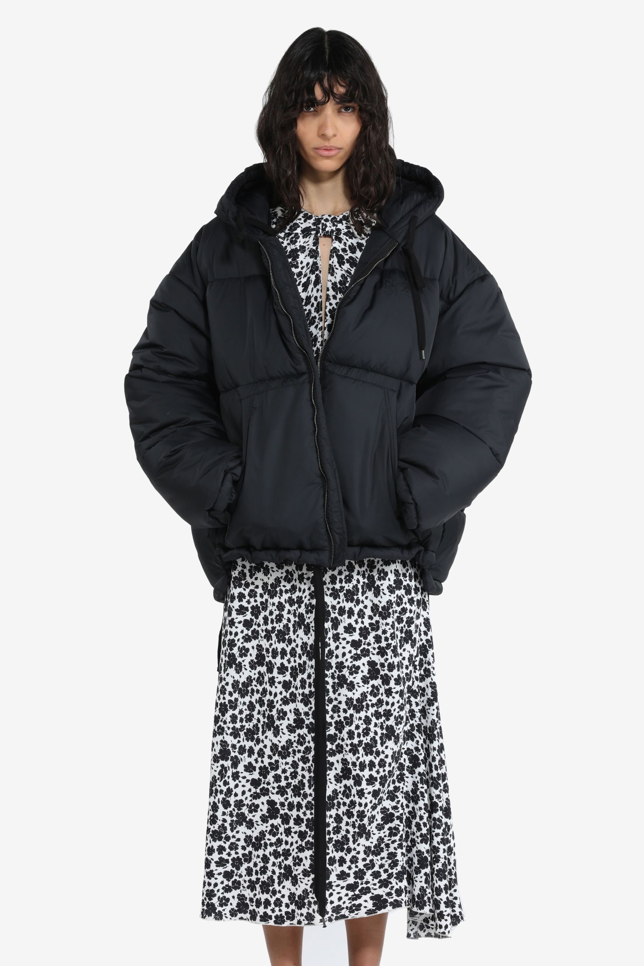 BLACK OVERSIZED PADDED COAT. DRAWSTRING HOOD. DROP SHOULDERS AND LONG SLEEVES. SLIP SIDE POCKETS. ADJUSTABLE DRAWSTRING HEM. ZIP FRONT FASTENING. MORE DETAILS BLACK OVERSIZED FIT 100% NYLON WASH 30° DELICATE CYCLE MADE IN ITALY STYLE ID: 24IN2M0O0815050 SIZE AND FIT MODEL IS 179CM AND WEARS SIZE S