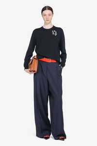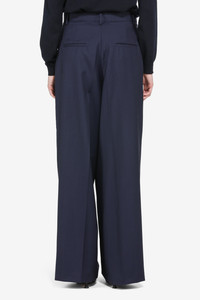 High-waisted palazzo pants with wide legs. Crafted from a flowing navy blue fabric, they feature a belt loop and front closure for a sleek look. Clean stitching and finished hems complete the piece, offering a roomy and comfortable silhouette. DETAILS Color: Blue Composition: 100%WV Product Code: 26EN2M0B04130166479 Made in Italy SIZE AND VESTIBILITY The model wears size 40 and is 179 cm tall. The garment fits oversized.