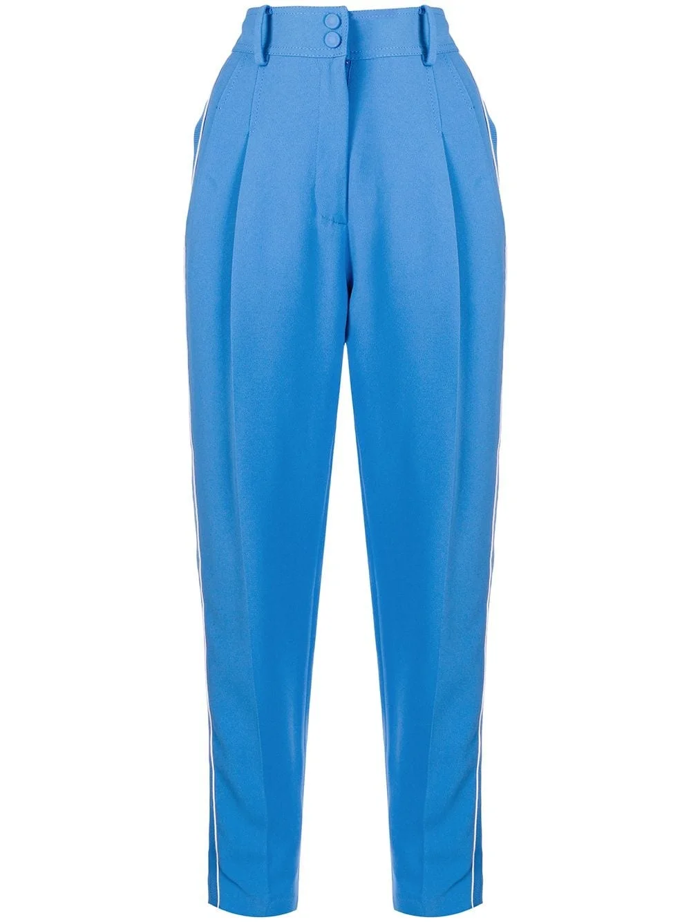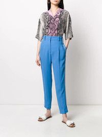 pleated tailored trousers Perfect to go to the office or just for a casual walk down the street, these blue pleated tailored trousers from Nº21 are a necessary style on any modern women's wardrobe. Simple, versatile and pretty stylish. Featuring a high waist, a waistband with belt loops, a front button fastening, a pleated design, side pockets, back pockets, a stripe detail to the side and a cropped length. Imported Composition Acetate 50%, Viscose 50% SIZE & FIT Model measurements Height 5 ft 9 in(1.76 m) Bust/Chest 29.92 in(76 cm) Hips 33.46 in(85 cm) Waist 24.01 in(61 cm) FittingInformation This piece fits true to size. We recommend you get your regular size Cut for a slim fit Made with a mid-weight non-stretch fabric Washing instructions Dry Clean Only