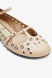 Round-toed ballerinas with metal studs on the upper and an adjustable strap. Light beige. Smooth upper with a flat sole. Adjustable buckle closure. DETAILS Color: Nude External composition: 100% CALF LEATHER Product Code: 26EGPBL030VT1C001 Made in Italy