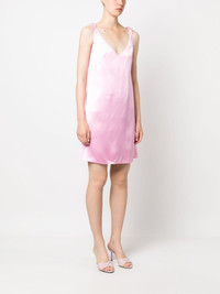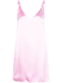 ruched-straps V-neck satin dress Highlights - Light pink - Satin finish - Ruched detailing - V-neck - Sleeveless - V-back - Rear zip fastening - Straight hem - Thigh-length Made in Italy Composition Viscose 100% SIZE & FIT Model measurements Height 5 ft 11 in(1.8 m) Bust/Chest 31.49 in(80 cm) Hips 36.41 in(92.5 cm) Waist 25.59 in(65 cm) FittingInformation Designed for a slim fit that sits just away from the body offering a close yet comfortable fit Made from a midweight non-stretch fabric This piece fits true to size – take your usual size