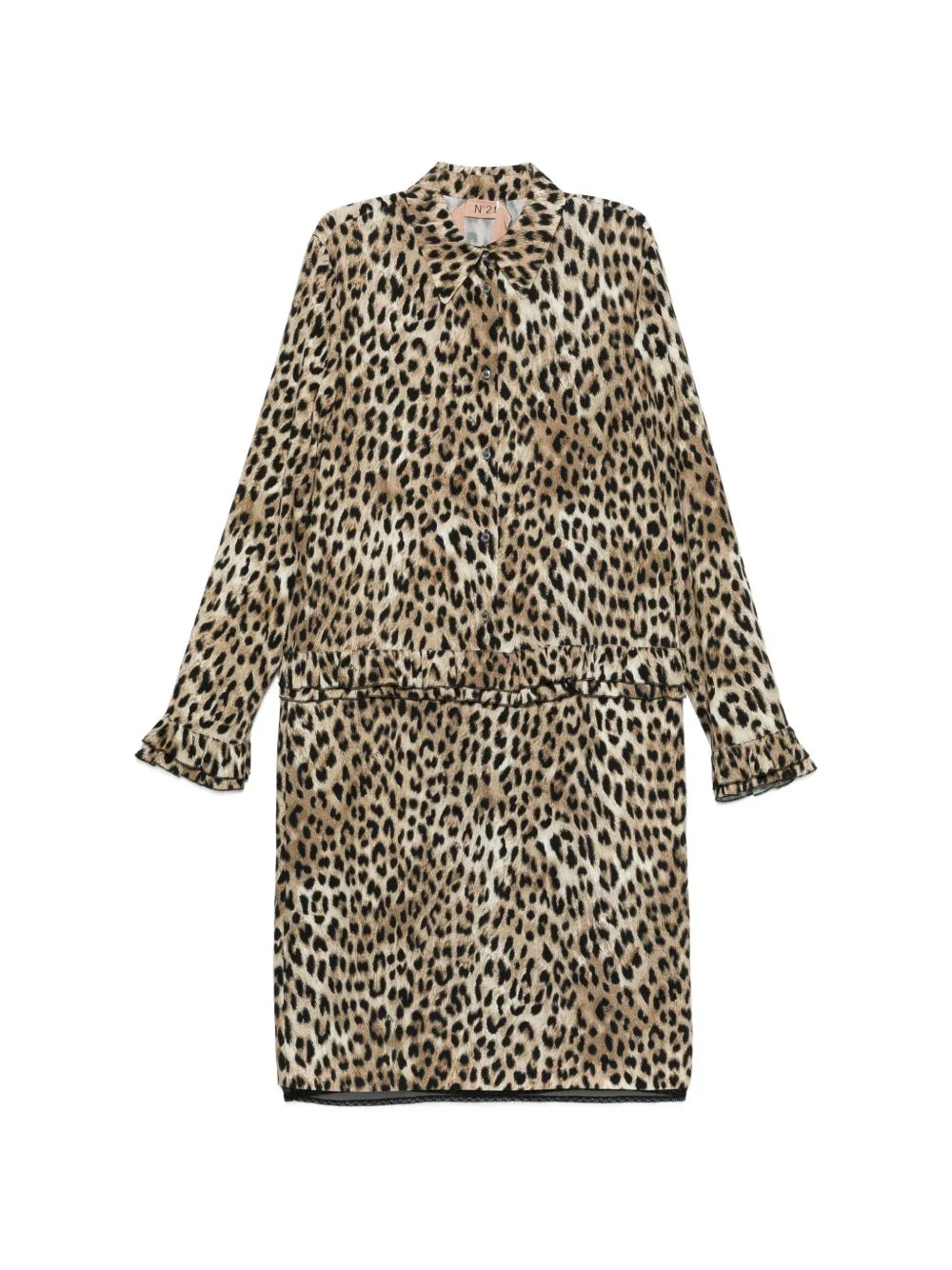 ruffled leopard-print dress Highlights - Light brown - Leopard print - Ruffled cuffs - Front button fastening - Collar - Gathered waist Made in Italy Composition Outer: Viscose 100%, Silk 100% Lining: Viscose 100% Washing instructions Dry Clean Only