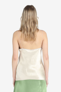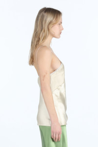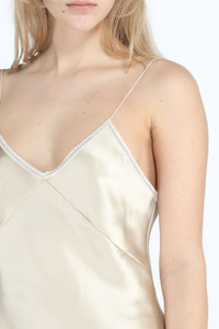 BEIGE SATIN TOP WITH CONTRAST LACE TRIMS AT THE V-NECK. SLIM SHOULDER STRAPS. DIAGONAL FRONT SEAMS. STRAIGHT HEM. MORE DETAILS BEIGE, WHITE, LIGHT PINK RELAXED FIT 100% VISCOSE DRY CLEAN ONLY MADE IN ITALY STYLE ID: 23IN2S0T04151181228 SIZE AND FIT MODEL IS 177CM AND WEARS IT SIZE 40
