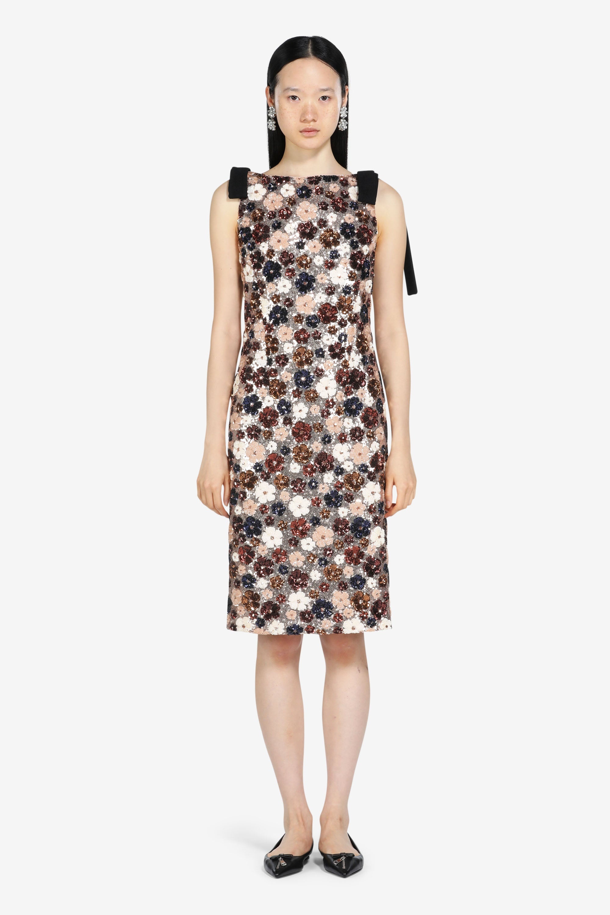 Silver-tone dress with all-over sequin embellishment. Scoop neck. Sleeveless and dropped armholes. Racerback. Tiered skirt. DETAILS SHOW Collection Silver-tone, brown, black 100% polyester Style ID: 25EN2S0H0125237M023 SIZE AND VESTIBILITY Model is 178cm and wears IT size 40