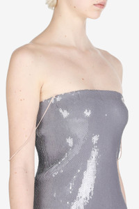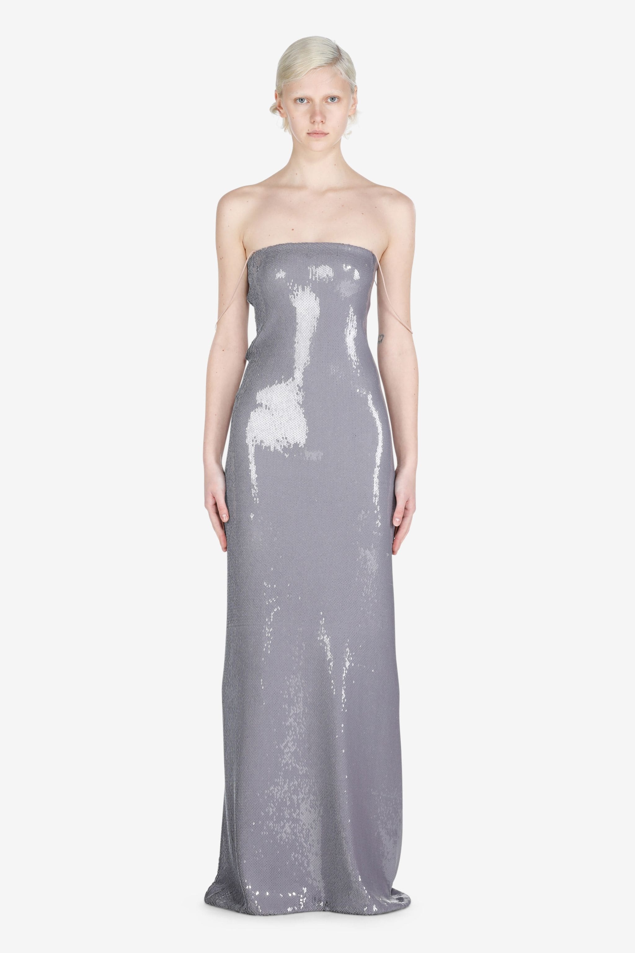 LIGHT-GREY SEQUIN-EMBELLISHED DRESS WITH OFF-THE-SHOULDER SLIM STRAPS. STRAIGHT NECKLINE. MAXI-LENGTH HEM. MORE DETAILS LIGHT GREY SLIM FIT 96% POLYESTER, 4% ELASTANE SPECIALIST DRY CLEAN ONLY MADE IN ITALY STYLE ID: 23IN2M0H17147288832 SIZE AND FIT MODEL IS 178CM AND WEARS IT SIZE 40