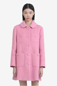 Short coat made of compact pink fabric, with a front closure with large covered buttons. The piece features a rounded collar and four patch pockets with flaps, also with covered buttons. The fit is slightly flared, with long sleeves and wide cuffs. The simple, linear design lends an elegant look. DETAILS Color: Pink Composition: 50%WO 23%PC 22%PL 5%AF Product Code: 25IN2M0N01130624141 Made In Italy SIZE AND VESTIBILITY The model wears size 40. The garment fits regular.