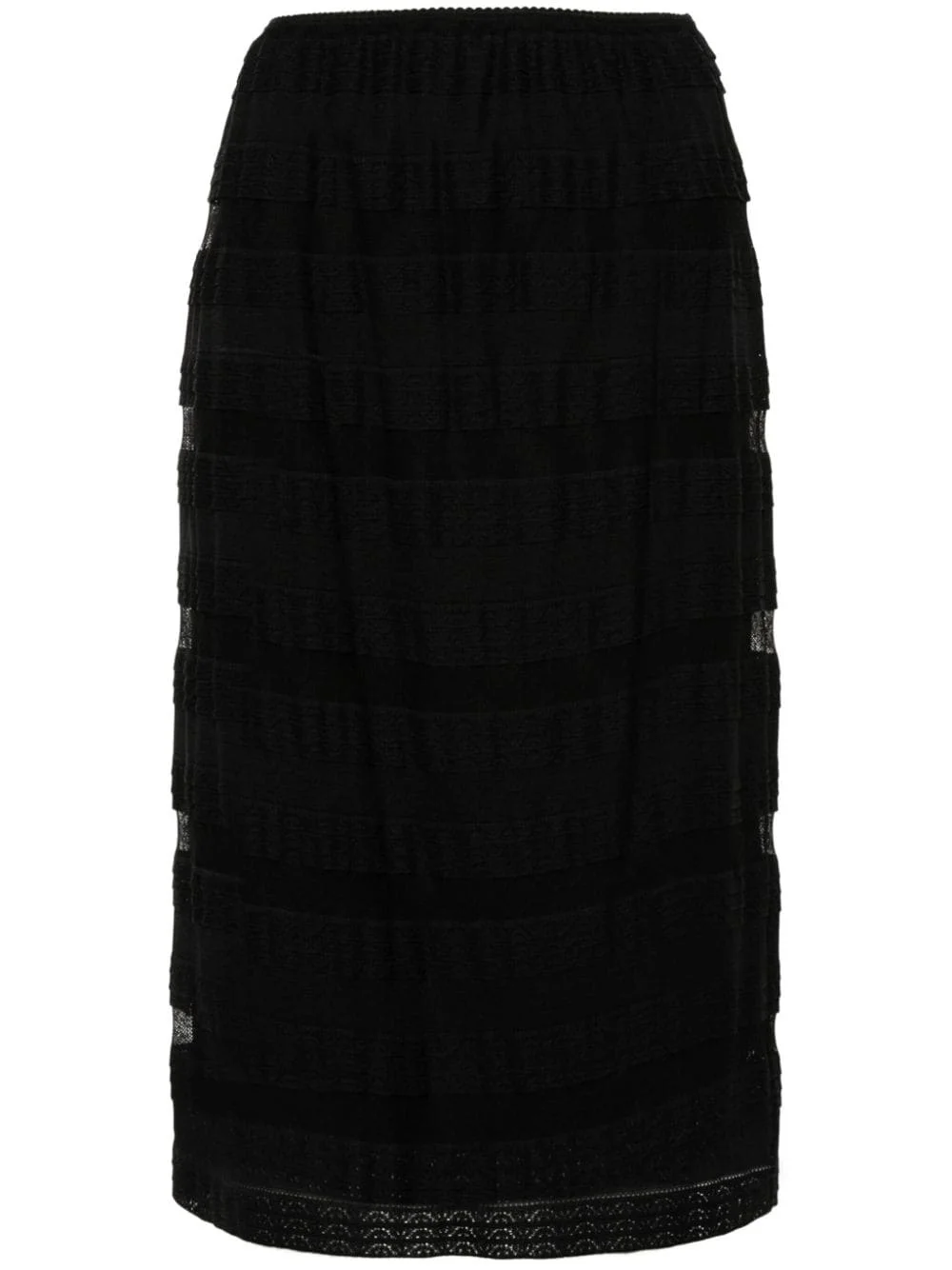 lace-construction skirt Highlights - Black - Semi-sheer construction - Mesh and lace detailing - Horizontal stripe pattern - Elasticated waistband - Full lining - Pull-on style Imported Composition Lining: Viscose 95%, Elastane 5% Outer: Polyamide 97%, Elastane 3% Washing instructions Hand Wash