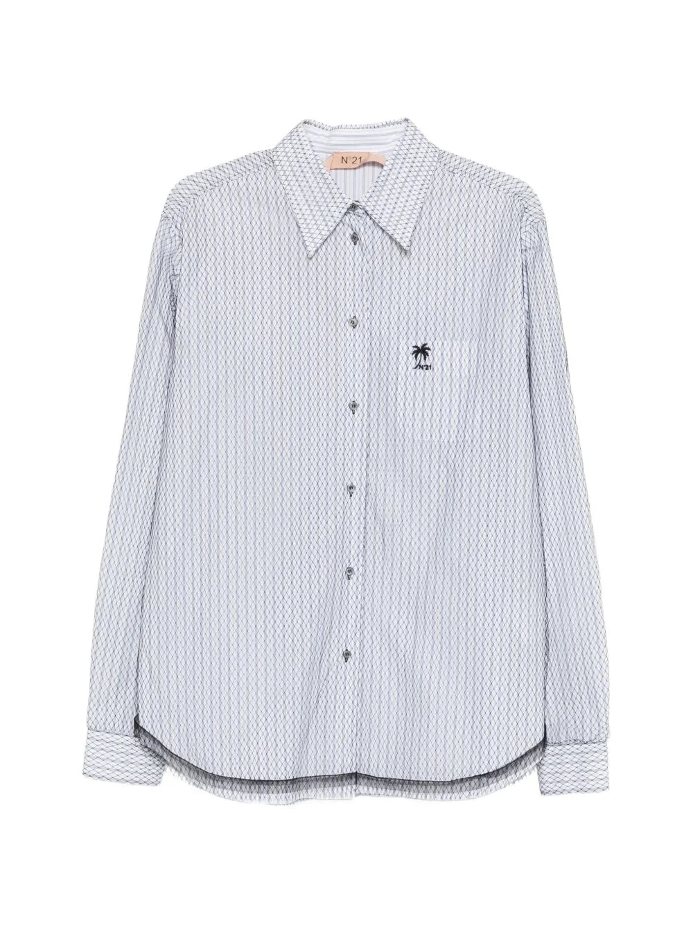 striped embroidered shirt Highlights - White and blue - Striped - Embroidered detail - Button fastening - Chest pocket - Curved hem Made in Italy Composition Polyamide 100% Washing instructions Hand Wash