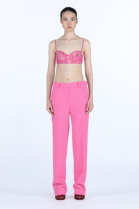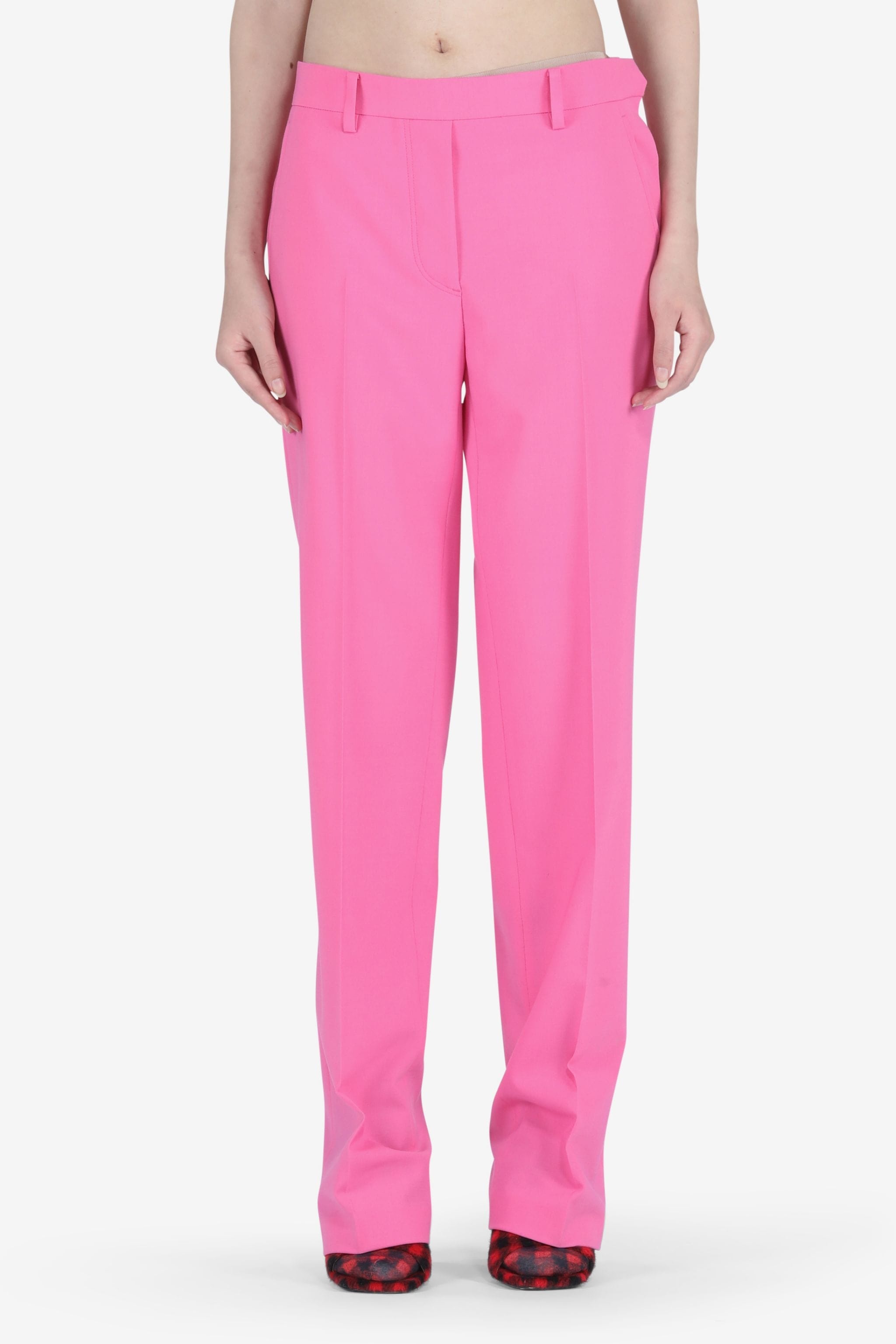 PINK WOOL-BLEND STRAIGHT-LEG TROUSERS. HIGH WAIST WITH BELT LOOPS. SLIP SIDE POCKETS. PRESSED CREASES AT THE CENTRE-FRONT AND BACK. WELT BACK POCKETS. CONCEALED BUTTON SIDE FASTENING. MORE DETAILS RELAXED FIT 53% POLYESTER, 43% WOOL, 4% ELASTANE DRY CLEAN ONLY STYLE ID: 22IN2M0B03130354321 SIZE AND FIT MODEL IS 177CM AND WEARS IT SIZE 40