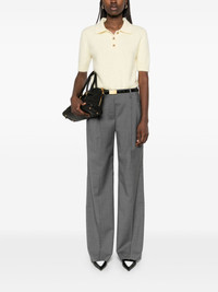 tailored trousers Highlights - Ash grey - Front button and zip fastening - Belt loops - Two side slit pockets - Two rear button-fastening jetted pockets Made in Italy Composition Virgin Wool 100% SIZE & FIT Model measurements Height 5 ft 11 in(1.8 m) Bust/Chest 32.67 in(83 cm) Hips 36.22 in(92 cm) Waist 24.4 in(62 cm) FittingInformation Designed with a wide-leg cut, these trousers allow for a close fit at the waist and offer a loose and roomy fit over the leg Made from a midweight non-stretch fabric