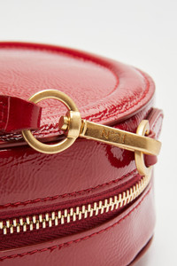 The Tamburello shoulder bag is crafted from shiny red leather with gold hardware. The round design is compact and structured, with a zip closure and an adjustable shoulder strap for personalized comfort. The bag features a discreet logo on the front and a sturdy construction that ensures durability and practicality. DETAILS Color: Red External composition: 100% CALF LEATHER Product Code: 25IBP0989NK01R001 Made in Italy SIZE AND VESTIBILITY Measurements: 17x14.5x7