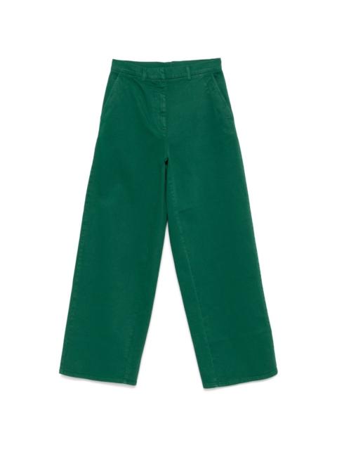 twill-weave trousers Highlights - Forest green - Concealed fly and button fastening - Belt loops - Two diagonal pockets to the sides - Two rear welt pockets Made in Italy Composition Cotton 98%, Spandex/Elastane 2%