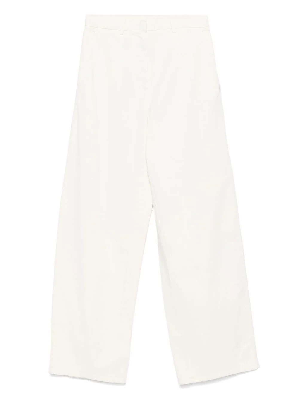 twill-weave trousers Highlights - Ecru - Concealed fly and button fastening - Belt loops - Two diagonal pockets to the sides - Two rear welt pockets Made in Italy Composition Cotton 99%, Elastane 1%
