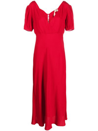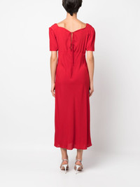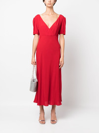 tie-fastening midi dress Nº21 puts a romantic spin on minimalist designs for SS23, as evidenced by this red maxi dress. Woven with touches of silk, it features a wide plunging V-neck at the front and delicate ties at the back. Highlights - Red - Silk blend - Plunging v-neck - Short sleeves - Rear tie fastening - Empire line - Ankle-length Made in Italy Composition Acetate 69%, Silk 31% SIZE & FIT Model measurements Height 5 ft 11 in(1.8 m) Bust/Chest 31.49 in(80 cm) Hips 35.43 in(90 cm) Waist 24.4 in(62 cm) FittingInformation Designed for a slim fit that sits just away from the body offering a close yet comfortable fit Made from a midweight non-stretch fabric This piece fits true to size – take your usual size Washing instructions Dry Clean Only