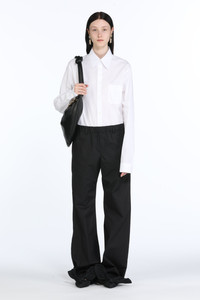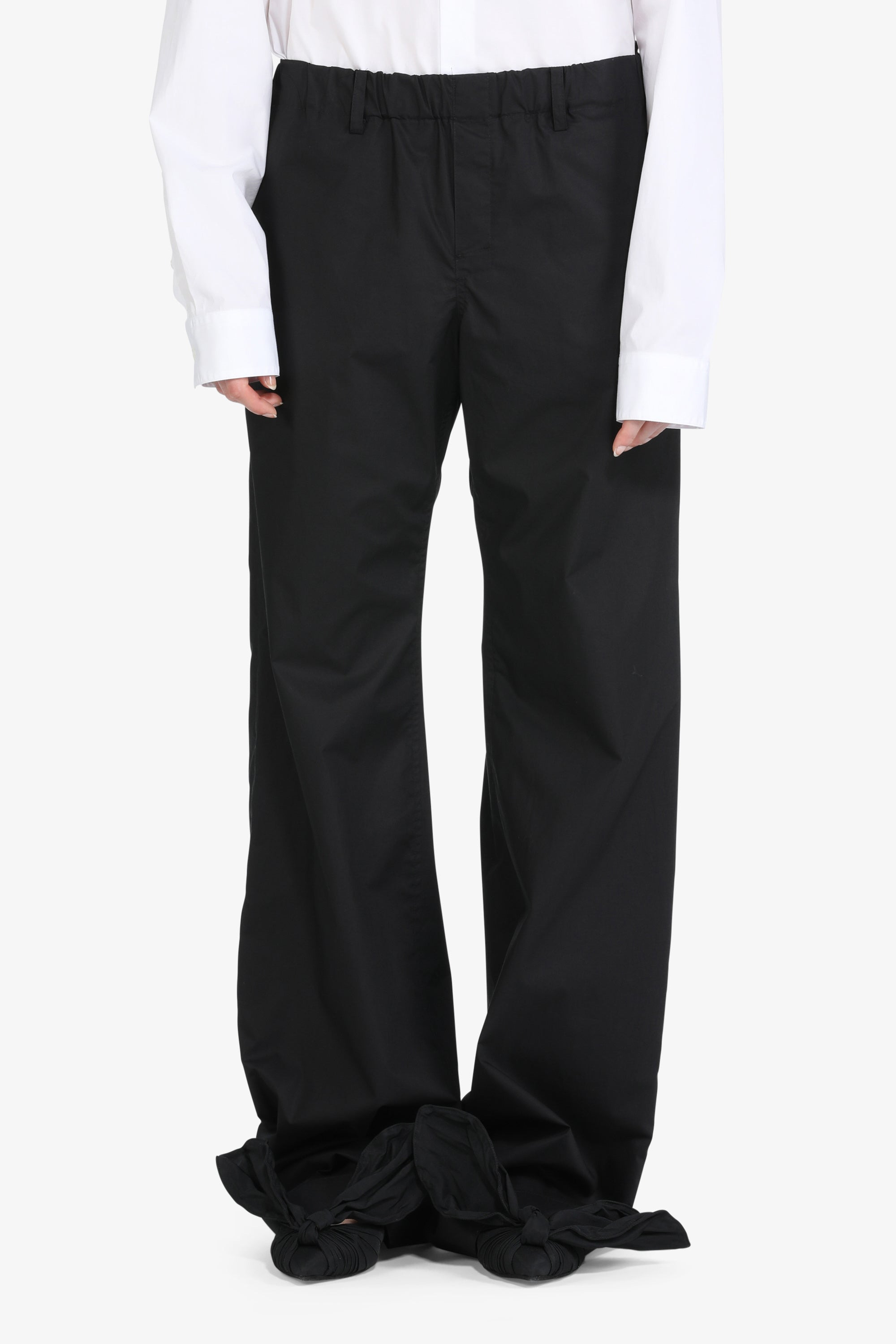 Black cotton trousers with an elasticated waist. Belt loops. Slip side pockets. Wide legs. DETAILS Black Loose fit 100% cotton Made in Italy Style ID: 25EN2M0B04101329000