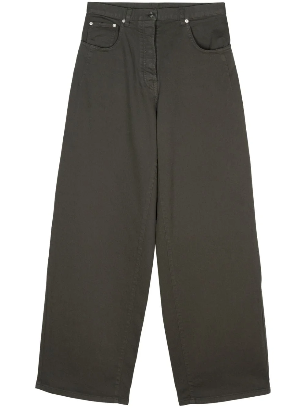 wide-leg trousers Highlights - Olive green - Cotton blend - Twill weave - Button fly fastening - Mid-rise - Belt loops - Classic five pockets - Logo patch to the rear - Wide leg - Long length Imported Composition Cotton 99%, Elastane 1%