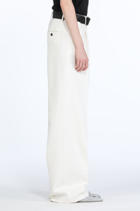 WHITE TROUSERS WITH EXTENDED WIDE LEGS. LOW-WAIST WITH BELT LOOPS. SLIP SIDE POCKETS. PRESSED PLEATS AT FRONT AND BACK. JET BACK POCKETS WITH BUTTON FASTENING. BUTTON AND CONCEALED ZIP FRONT FASTENING. MORE DETAILS WHITE REGULAR FIT 63% POLYESTER, 27% VISCOSE, 7% COTTON, 3% ELASTANE MADE IN ITALY STYLE ID: 25EN2M0B01151131108 SIZE AND FIT MODEL IS 179CM AND WEARS IT SIZE 40