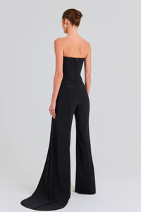 FAYE is an asymmetric cut top, crafted from exclusively designed black crepe with a bandeau neckline, corset boning for structure, shape, and support, and is finished with a dramatic, floor-length drape cut to a curve. Pair it with the CHARLOTTE Black Pants to complete the look. - Black crepe fabric - Bandeau neckline - Structured corset boning to the bodice - Dramatic floor-length drape to the side - Concealed zip closure - Outer: 94% Polyester 6% Elastane Lining: 94% Polyester 6% Elastane Size & Fit Information - Fits true to size, take your normal size - Model is 175cm/5'9" wearing 4" heels and is wearing a size XS - Please note that if the drape arrives longer than you desire it can be easily taken up by a local tailor.