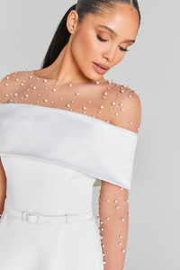 HETTIE is a romantic, delicate pearl-embellished bodysuit, crafted from mesh with a Lycra deep heart-shaped neckline lining and a popper closure. Pair with the HARPER White Dress, ELLA White Corset top or VANESSA White Jumpsuit to complete the look. - Mixed fabrication - Round neckline - Full-length sleeves - Popper closure - Figure-hugging fit - Part-lined in Lycra - Outer: 85% Nylon 15% Elastane Mesh: 100% Nylon Size & Fit Information - Item runs to our size chart. Please refer here for the best fit. - M odel is 177cm/5'9" wearing 4" heels and is wearing a size XS - True to size - Stretch Factor: Stretch