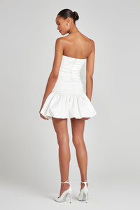IRIS is a mini dress with a bandeau neckline, crafted from textured gold jaquard fabric. Featuring a ruched bodice with internal boning to the front, back, and sides, and a puffball style mini skirt. Finished with a concealed zip to the centre back and fully lined for a smooth fit. - Textured gold jacquard fabric - Mini dress - Bandeau neckline - Internal boning to the front back and sides - Pleated bodice - Puffball mini skirt - Concealed zip to the centre back - Fully lined for a smooth fit - Outer: 100% Polyester, Lining: 96% Polyester 4% Elastane Size & Fit Information - Item runs to our size chart. Please refer here for the best fit. - Model is 5'9" wearing 4" heels and size XS - Stretch Factor: No Stretch