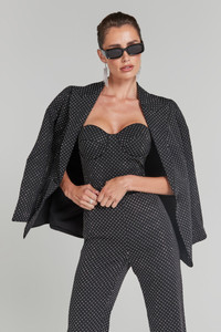 Made for show-stopping entrances, our KIRA Black Embellished Blazer is a force to be reckoned with. Tailored from our exclusively designed crepe fabric with shimmering crystal detail, this black embellished blazer is guaranteed to make a statement, no matter the event. The KIRA single-breasted women's blazer is fully lined in our signature MERABI satin for a smooth and comfortable fit. Make her yours and prepare to step into the new season with all eyes on you. Size & Fit Information - Item runs to our size chart . Please refer here for the best fit. - Model is 175cm/5'9" wearing 4" heels and a size XS. - Stretch Factor: No Stretch.