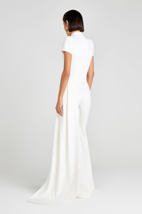 Meet PIPPA; MERABI’s white draped top is the next addition to your occasion wardrobe. Tailormade for every moment, this party top is designed with our signature white crepe fabric and a floor-length drape cut to a curve. Featuring a high neckline, structured shoulder pads, and cap sleeves, PIPPA exudes a defined silhouette. Finished with a concealed zip closure at the back for a smooth fit. Size & Fit Information - Item runs to our size chart. Please refer here for the best fit. - Model is 176cm/5'8" wearing 4" heels and is wearing a size XS - Please note that if the drape arrives longer than you desire it can be easily taken up by a local tailor.