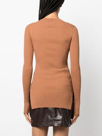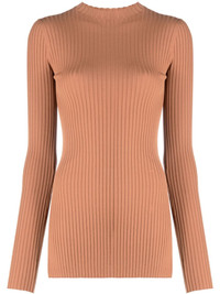 Bardia ribbed knitted top Spun from a soft and stretch blend of recycled viscose, Nanushka's Bardia top is woven into a finely ribbed texture and cut to a silhouette-hugging fit. Highlights - Chestnut brown - Recycled viscose blend - Knitted construction - Fine ribbed - Crew neck - Long sleeves - Straight hem Imported Composition Recycled Viscose 52%, Recycled Polyamide 46%, Spandex/Elastane 2% SIZE & FIT Model measurements Height 5 ft 10 in(1.78 m) Bust/Chest 33.07 in(84 cm) Hips 36.61 in(93 cm) Waist 24.8 in(63 cm) FittingInformation Designed for a close fit throughout Made with a midweight knit, this piece offers some stretch This piece fits true to size – take your usual size Washing instructions Hand Wash
