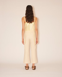 BEATA - Slim leg cropped kick flare trouser - Creme