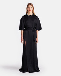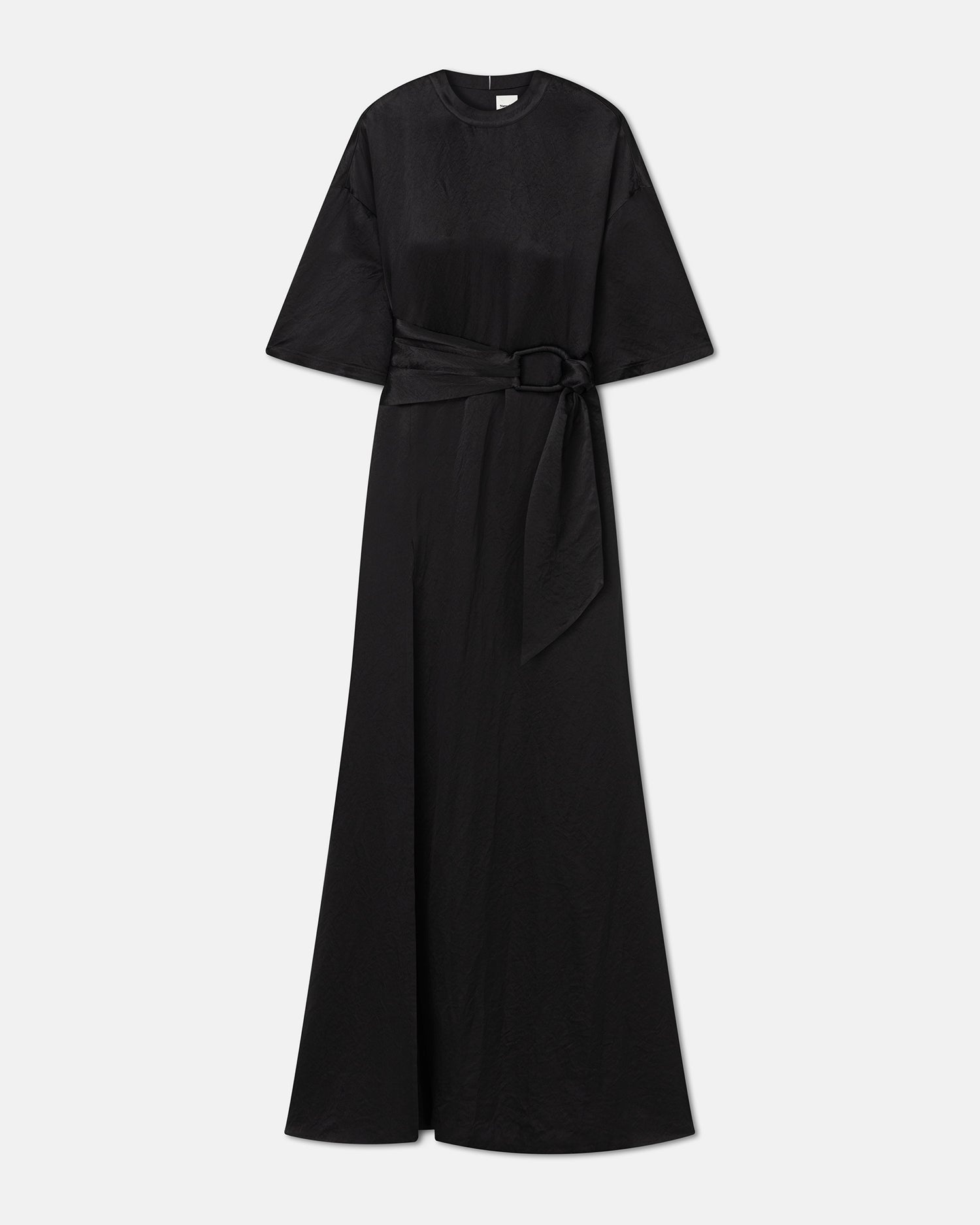 The Maelys dress is our take on the classic T-shirt style. Effortless and elegant, it’s made from crinkled satin for subtle texture and has a relaxed silhouette that pools elegant over the feet. Cinch the waist with the accompanying belt. Fit Standard fit, matches usual sizing. Model is 177 cm (5'9'') and wears a size S. Materials and Care Shell: 100% Acetate Machine wash warm (30°), do not bleach, do not tumble dry, do not iron, gentle dry clean any solvent except trichloroethylene handle with care and wash less to ensure garment lifespan. repair or resell to support circular fashion.naia™ is a cellulosic fiber made from sustainably sourced wood pulp. it’s produced in a safe, closed-loop process where solvents are recycled back into the system for reuse.