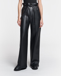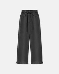 Cinching techniques are a key part of our modern design ethos. Made from regenerated leather, the Harlee pants have a paper-bag waist brought together by a self-tie belt. They fall in loose legs that feature subtle fringing at the hem. Fit Regular fit, true to size. Wide leg pants Regenerated leather Tubular tie around waist - removable Pockets on the sides Two patch pockets on the back Fringe detailing at the bottom Model is 177 cm (5'9'') and wears a size S. Materials and Care Shell: Base: 100% Polyester Coating: Polyurethane Back: Bonded Leather Middle: 80% Polyester 20% Polyamide Do not wash, do not bleach, do not tumble dry, do not iron, dry clean any solvent except trichloroethylene.handle with care to ensure garment lifespan. repair or resell to support circular fashion.