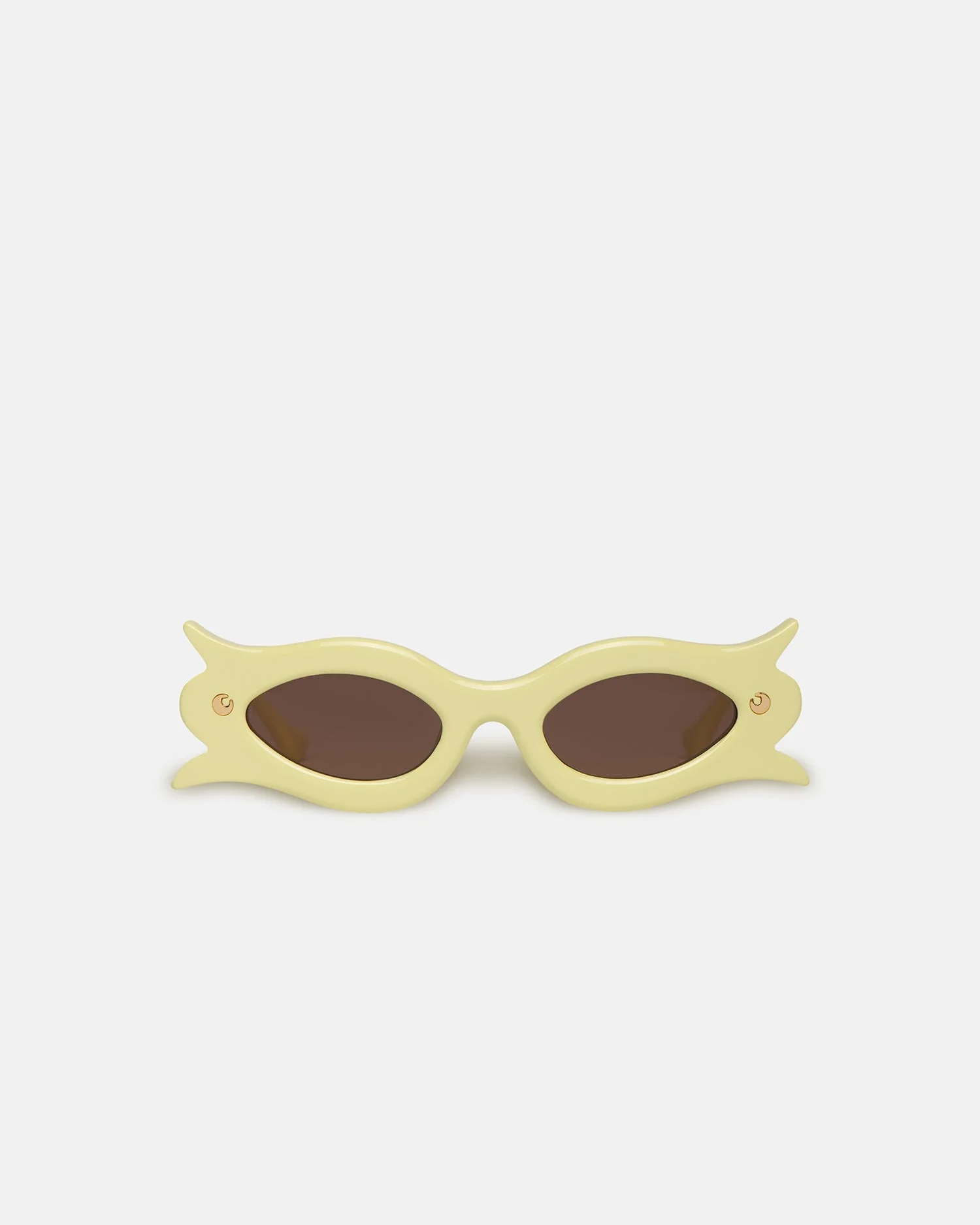 We are constantly inspired by the sculptural, rounded shapes found in nature. Crafted from bio-based plastic, the Tully sunglasses have a striking silhouette that resembles flowers. They are finished with subtle gold-tone hardware and logo-branded arms. Floral shaped sunglasses Gold detail on the front Signature gold Nanushka logo motifs at the temples Materials and Care Frame: 100% Acetate (68% Bio-Based) Use a damp cloth and a mild soap to clean the lenses then dry them with the soft cleaning cloth sold with the product. do not use solvents (e.g alcohol acetone) or aggressive detergents which may alter the features of the glasses.