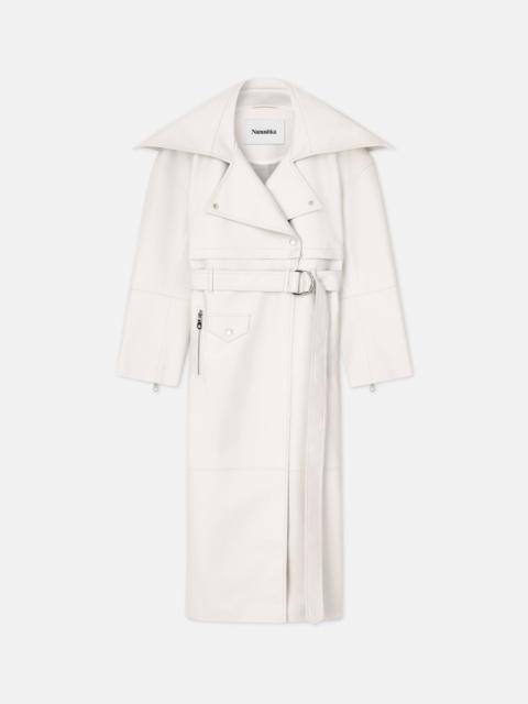 Taking the classic trench style and making it modern, the Elinor coat encapsulates our new heritage ethos. It eschews the expected double-breasted silhouette in favour of a single row of button fastenings to keep things sleek and streamlined. It’s finished with more traditional epaulettes, a waist-cinching belt and snap-fastening cuffs. Materials and Care Shell: 100% Cotton Lining: 83% Polyamide 17% Elastane Do not wash, Do not bleach, Do not tumble dry, Do not iron, Can be dry cleaned but only using hydrocarbons and trifluorotrichloromethane