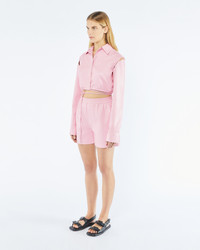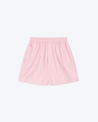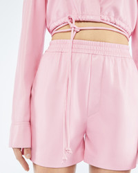 The Brenna shorts are crafted from our signature OKOBOR™ alt-leather for a butter-soft feel. In a playful pink hue, they have an elasticated waist and mid-thigh length. OKOBOR™ is exclusive to Nanushka. Our new alternative to leather, with 100% recycled backing and a more responsible composition. Previously referred to as vegan leather, alt-leather is free from the use of animal skin or derivatives. Shell: Coating Polyurethane Backing: 100% Recycled Polyester; Lining 56% Acetate 44% Viscose
