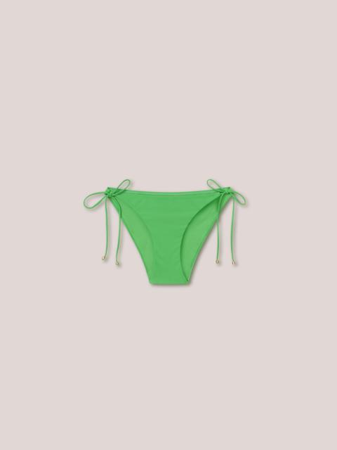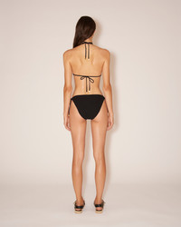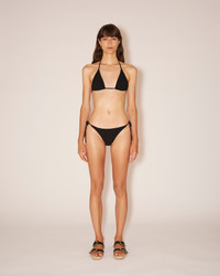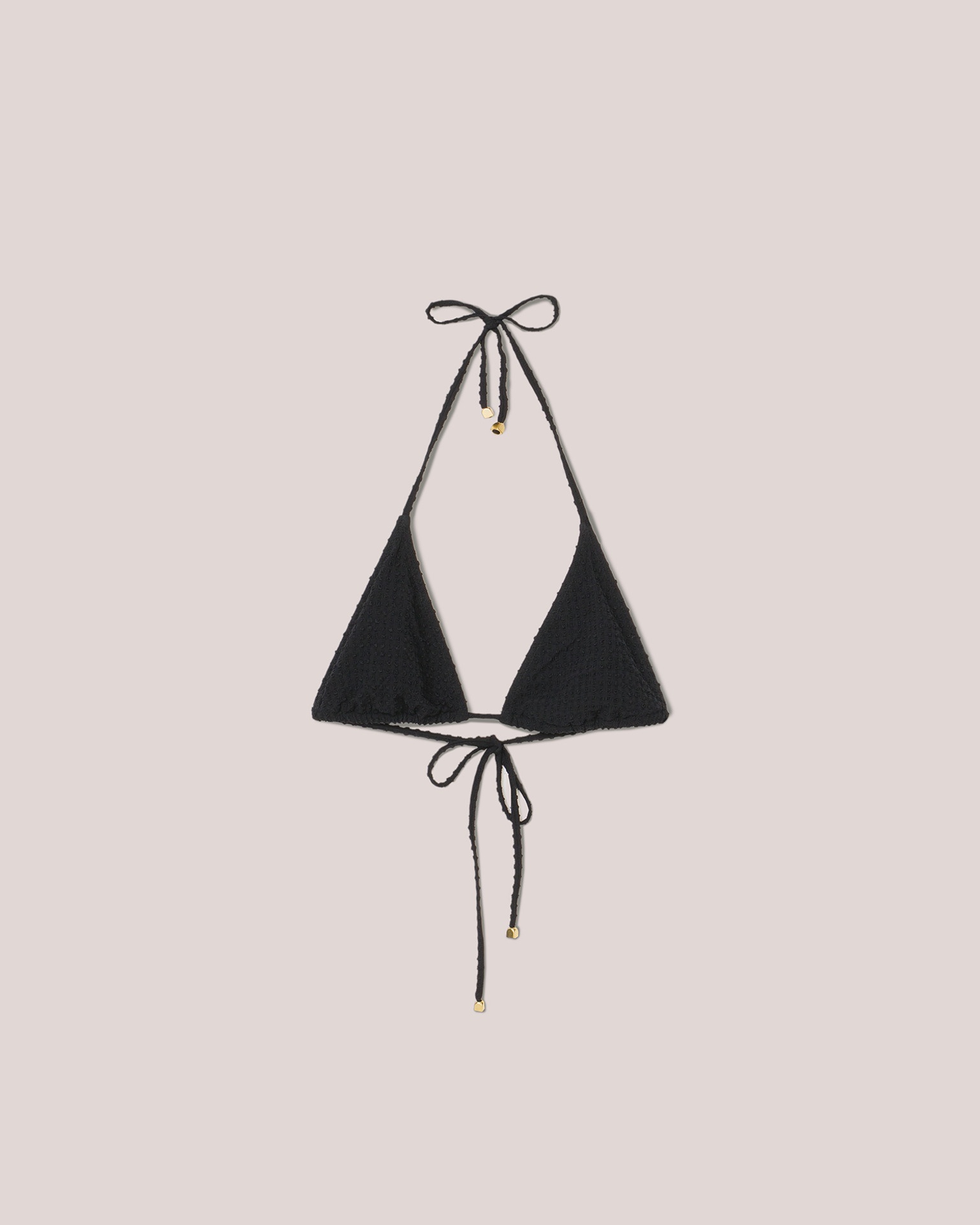 The Caia is a triangular string bikini that fastens at the back and behind the neck with ties. It has a deep v neckline—team with the Julie bottoms in the corresponding seersucker fabric. Model is 176 cm (5'9") tall and wears a size S. Body 90% Nylon, 10% Elastane; Lining 85% Nylon, 15% Spandex