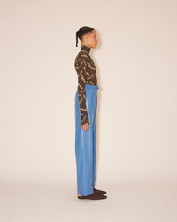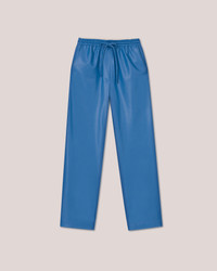 Showcasing Nanushka’s signature OKOBOR™ alt-leather in bold blue, the Calie pants can easily be dressed up or down. The relaxed drawstring waist can be worn low on the hips or high on the waist, while slip pockets and a straight leg silhouette provide practical ease. OKOBOR™ is exclusive to Nanushka. Our new alternative to leather, with 100% recycled backing and a more responsible composition. Previously referred to as vegan leather, alt-leather is free from the use of animal skin or derivatives. Body 56% RECYCLED POLYESTER Body 44% POLYURETHANE Lining 56% ACETATE Lining 44% VISCOSE
