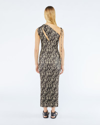 The Camille dress is cut from recycled mesh jersey for a figure-sculpting silhouette enhanced by an asymmetric one-shoulder cut. It turns to reveal a cut-out back for further definition. The brushstroke animal print is artful yet abstract. Materials and Care Shell: 100% Recycled Polyester Do Not Bleach, Do Not Tumble Dry, Iron Low Heat (110), Dry Clean Any Solvent Except Trichloroethylene, Machine Wash Warm (30)