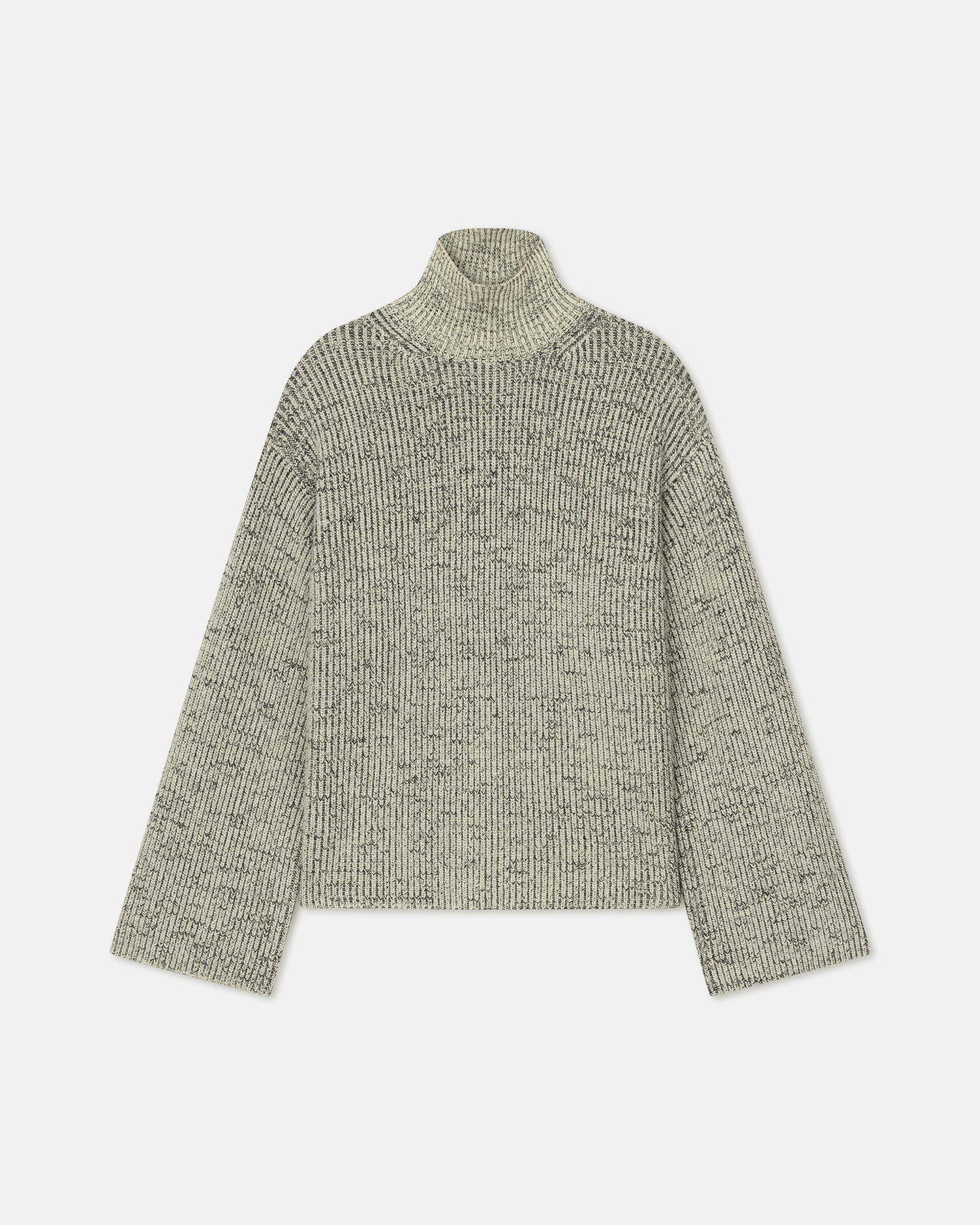 The Nienke sweater showcases our refined bohemian aesthetic. It is expertly knitted from black and moon-coloured threads for a luxurious mouline finish, with an enveloping oversized fit. The touch of cashmere delivers warmth and softness. Fit Oversized: Designed to be intentionally oversized. Take your usual size for the oversized effect, or take a size down for a more regular fit. Turtleneck sweater Oversized fit Cashmere blend material Wide long sleeved Model is 177 cm (5'9'') and wears a size S. Materials and Care Shell: 90% Wool 10% Cashmere Hand wash, do not bleach, do not tumble dry, iron low heat (110°), gentle dry clean any solvent except trichloroethylene, dry flat . handle with care and wash less to ensure garment lifespan. repair or resell to support circular fashion.