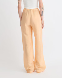 The Arvenn Pants from our Fall/Winter 25 collection bring relaxed tailoring into focus. Crafted from pinstripe wool, their fluid shape is balanced by an elastic waist for comfort and ease. In apricot, these everday pants merging effortlessness and refinement in one timeless piece. Fit Standard fit, matches usual sizing Model is 175 cm (5'9") and wears a size S. Materials and Care Shell: 83% VISCOSE 17% POLYAMIDE Do not wash, Do not bleach, Do not tumble dry, Iron low heat (110°), Gentle Dry clean any solvent except Trichloroethylene
